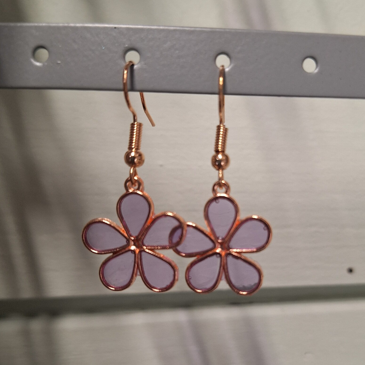 Voeg een vleugje elegantie toe aan je look met deze prachtige oorbellen! De rosé gouden afwerking en het delicate paarse bloemdesign maken ze perfect voor elke gelegenheid. Lichtgewicht en comfortabel, ze zijn ideaal voor dagelijks gebruik of een speciale avond uit.