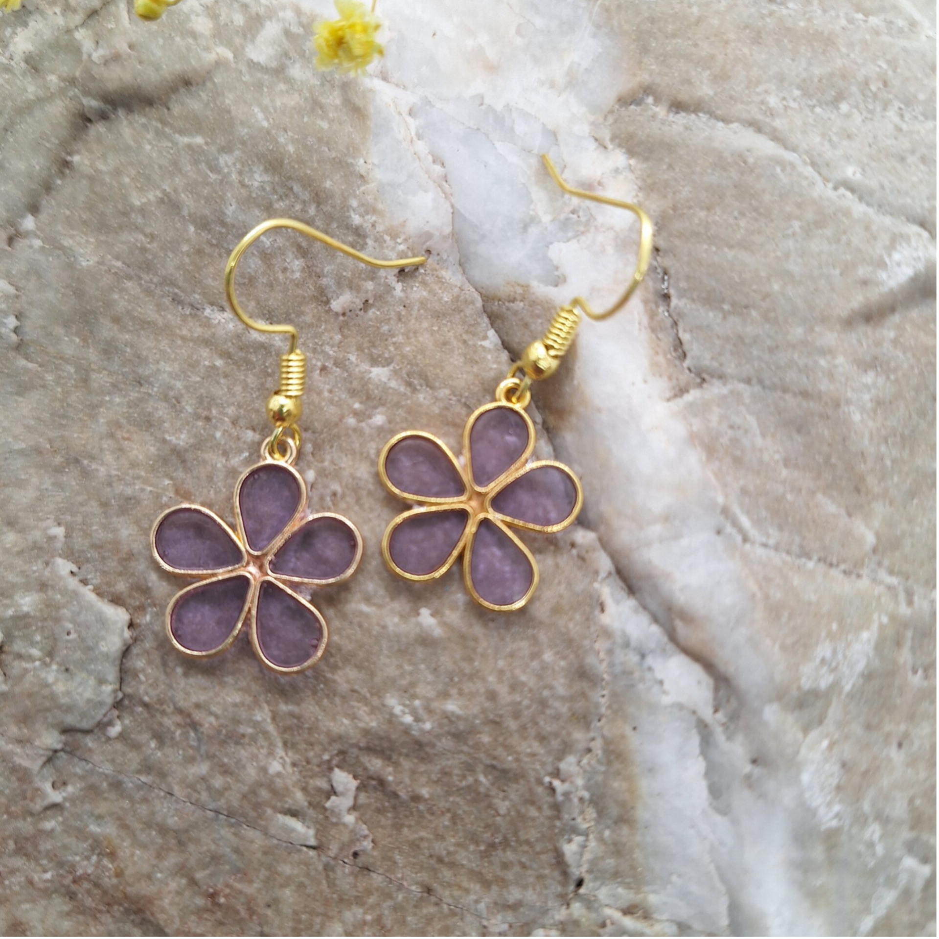 Goudkleurige Paarse Bloem Oorbellen Charmant