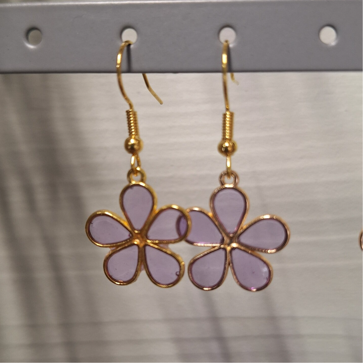 Voeg een vleugje elegantie toe aan je look met deze goudkleurige oorbellen. De delicate paarse bloemen zorgen voor een speelse maar verfijnde uitstraling. Lichtgewicht en comfortabel, perfect voor elke gelegenheid.
