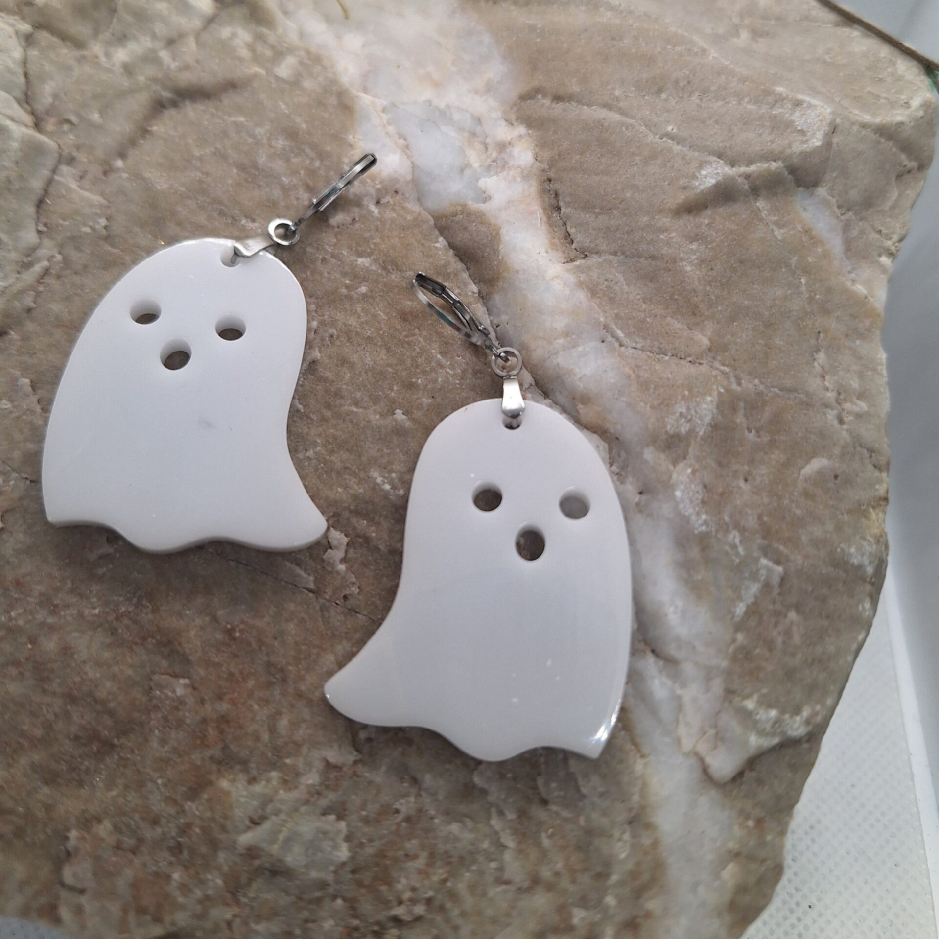 Maak je Halloween-look compleet met deze opvallende spookchtige oorbellen! Ze zijn gemaakt met een antiek zilverkleurige latchback sluiting. De speelse spookontwerpen voegen een vleugje griezelige charme toe aan elke outfit.