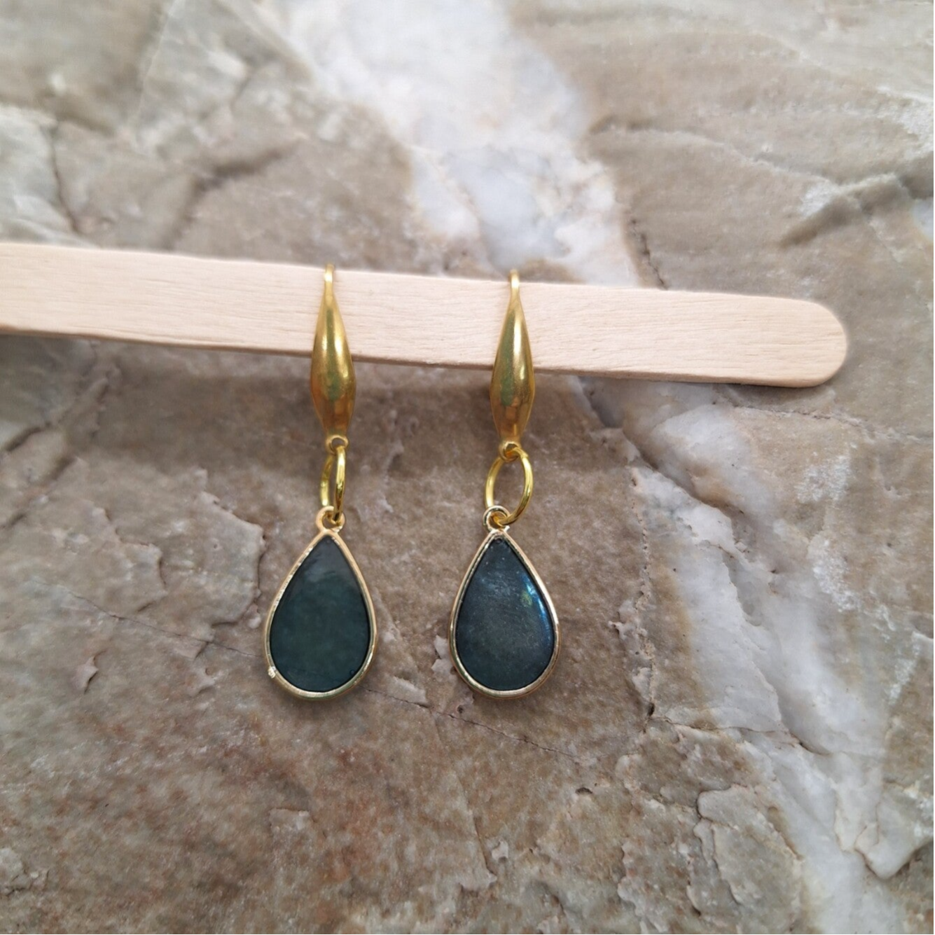 Beleef de luxe met onze elegante goudkleurige druppelvormige oorbellen in nachtelijk blauw. Deze prachtige oorbellen zijn perfect voor elke gelegenheid en voegen een vleugje glamour toe aan uw outfit.