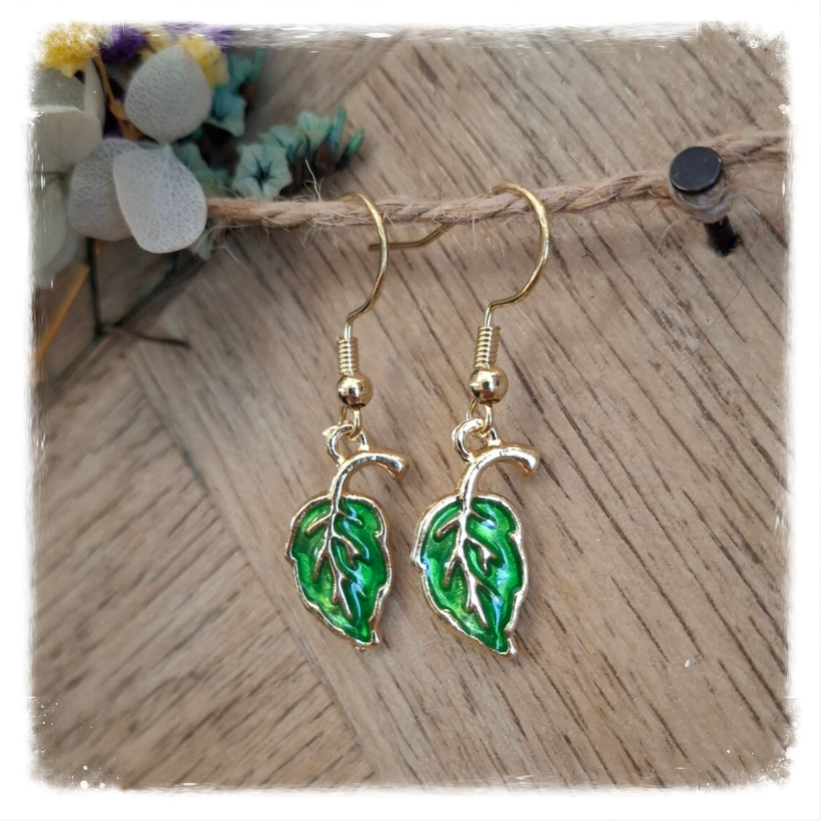 Deze verfijnde goldplated oorbellen brengen het warme gevoel van de frisse ntuur naar je look. Het groene blaadje, subtiel omlijnd met goudkleurige accenten, straalt elegantie en natuurlijke charme uit. De glanzende afwerking zorgt voor een opvallend, maar toch stijlvol effect — perfect voor zowel alledaags gebruik als een feestelijke gelegenheid.