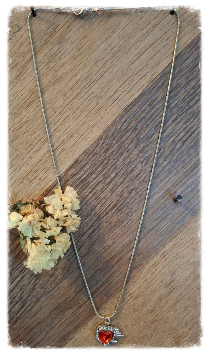 Deze combinatie van zilverkleur en dieprood geeft het sieraad een klassieke, maar toch speelse uitstraling.