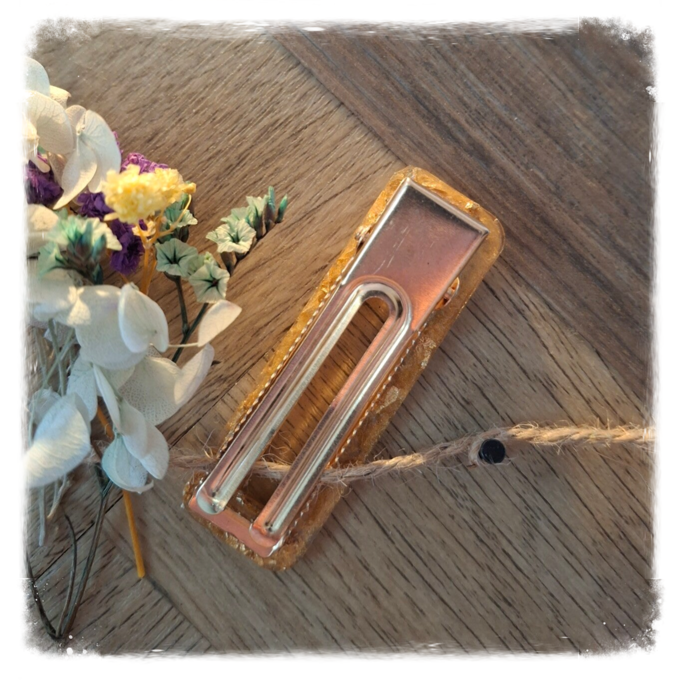 Goudkleurige ovaalvormige haarclip met echt 18k bladgoud (handgemaakt)