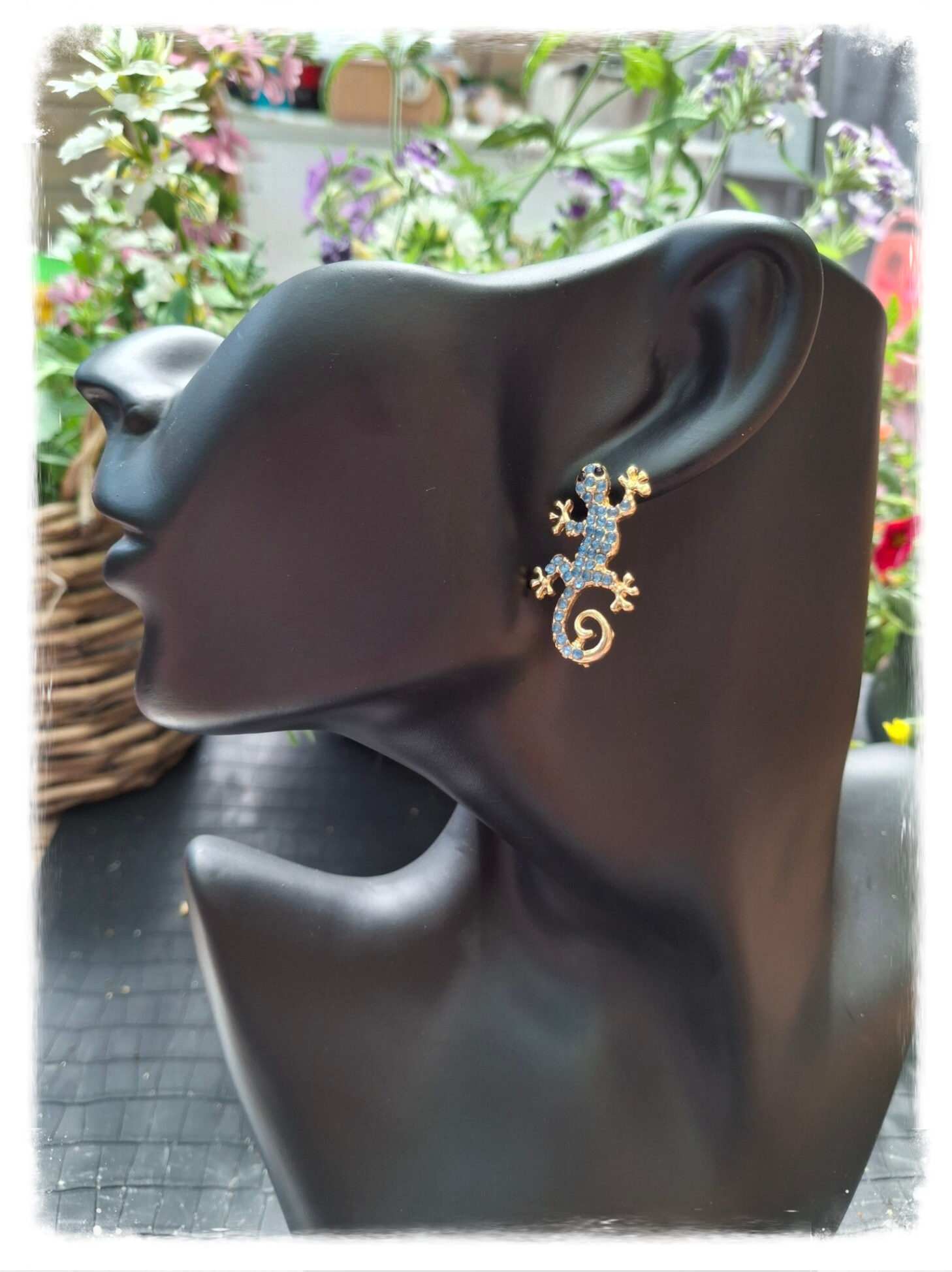 🦎 Goudkleurige Oorstekers – Salamander met Blauwe Zirkonia